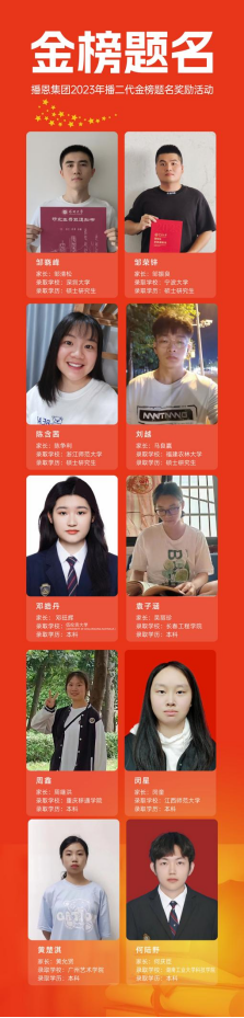 致辭結束后,就來到了最激動人心的金榜題名頒獎環(huán)節(jié)。本次活動,播恩集團為今年考取大學的10位播二代頒發(fā)了「播二代金榜題名獎學金」。