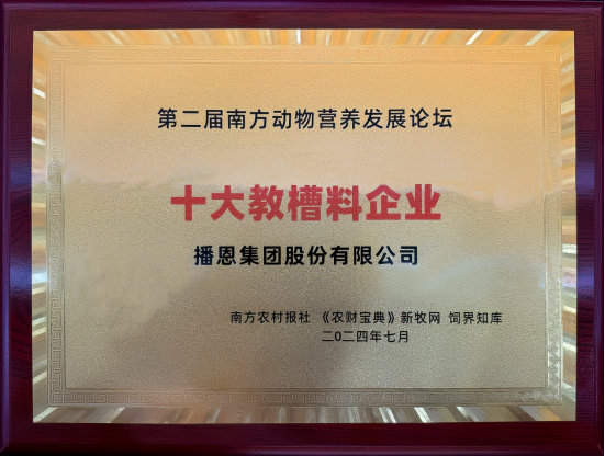 2024年7月14-16日,以“南方問(wèn)道,融合知新”為主題的2024第二屆南方動(dòng)物營(yíng)養(yǎng)發(fā)展論壇在廣西南寧隆重召開。該論壇作為南方地區(qū)規(guī)模大、規(guī)格高、陣容強(qiáng)的動(dòng)物營(yíng)養(yǎng)領(lǐng)域盛會(huì),吸引了近700位畜牧水產(chǎn)業(yè)的大咖齊聚。播恩集團(tuán)由欽州播恩總經(jīng)理?xiàng)畲簬ш?duì)參與,并憑借在動(dòng)物營(yíng)養(yǎng)領(lǐng)域的卓越表現(xiàn)和優(yōu)質(zhì)的教槽料產(chǎn)品,在此次論壇上獲得了“十大教槽料企業(yè)”榮譽(yù)。